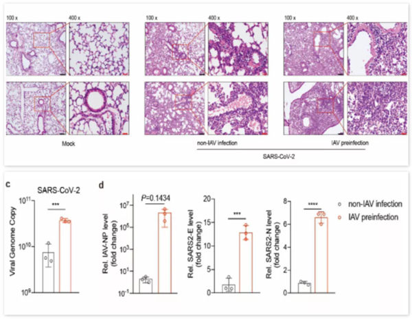 研究显示,流感和新冠共感染会引起更严重的肺部病理损伤和更高的新冠病毒载量。在一项医院的回顾性数据分析中发现,尤其当乙型流感病毒感染患者合并感染新型冠状病毒时,将会进一步增加新冠病毒的感染载量,患者往重症发展的几率增加,同时严重的肺部病理损伤会延长病情时间,而更高的新冠病毒载量会使得个体传播能力增强,疫情防控难度更大。